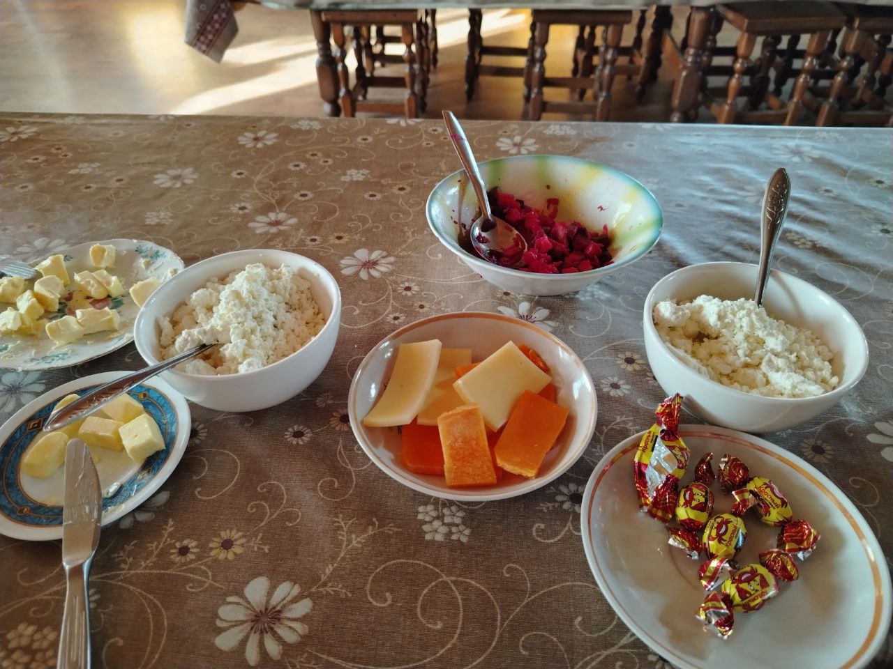 Знакомство с обителью начинается не с церковной службы, а с самого что ни на есть житейского процесса. Тут встречают не строгими проповедями, а... домашней едой. На часах – 10:30. На столе – сыр, творог, масло, печенье и даже сгущенка с конфетами. Угощение нехитрое, но оттого особенно душевное.