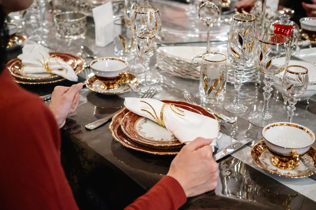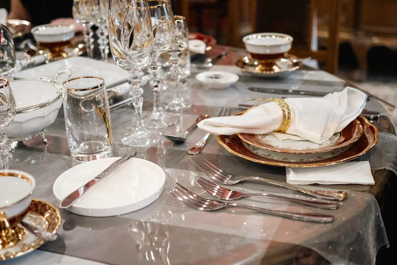 Простая, но элегантная логика хрустально-фарфорового изобилия заключается в том, что приборы разложены не для симметрии, а в строгом порядке: начинать следует с тех, что лежат дальше от тарелки. Чем скромнее вилка приютилась с краю, тем раньше она встретится с едой.