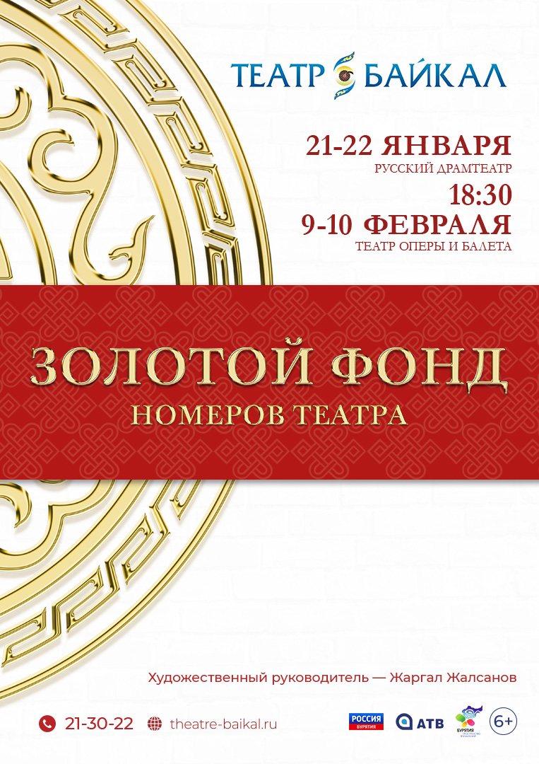 Концерты состоятся 21–22 января в русском драмтеатре и 9–10 февраля в театре оперы и балета. Приобрести билеты на концерты можно онлайн по ссылке: https://theatre-baikal.ru/performances/concerts/kontsert-zolotoy-fond/ или в кассе театра по адресу: ул. Ербанова, 11, оф. 540.