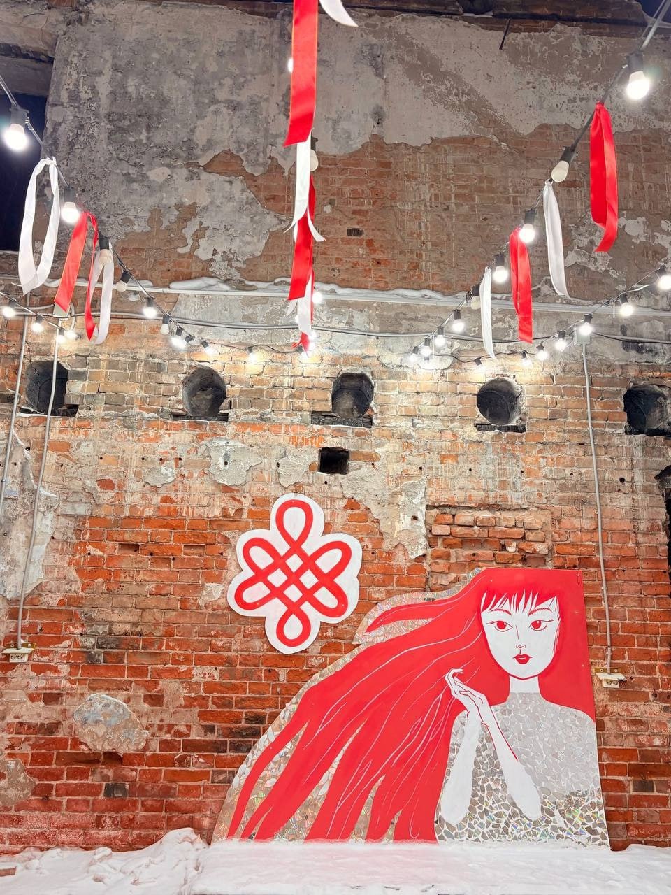 Автором данного проекта выступила дизайнер Айгуль Шагдырова. Это не простой набор декораций, а целая атмосферная локация, создающая праздничное настроение. Центральным элементом композиции стала фигура Сагаан басаган – традиционный бурятский символ чистоты, света и обновления, соответствующий духу нового года.