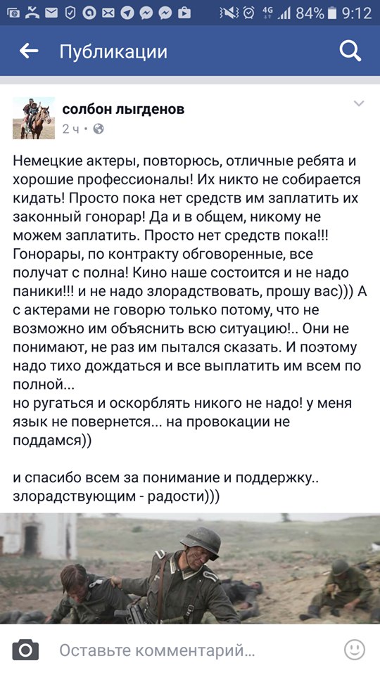 Для тех, кто не знает, я, Тристан Бумм, Штефан Воелк, Зимзон Баббл и Филлипп Матик-Арнольд де Лион, актеры из Германии, участники проекта Солбона Лыгденова, были приглашены сыграть немецких солдат в большом кинопроекте о Второй мировой войне. Мы приехали в Бурятию летом 2016 года и пробыли там 3 месяца. Нами был подписан контракт, в соответствии с которым нами предполагалось сыграть более 30 сцен, и определена зарплата (обсуждавшаяся до нашего приезда), из расчета за каждый сьемочный день, которая в итоге была изменена на ежемесячную зарплату. Мы согласились с этим, обсудив все детали.