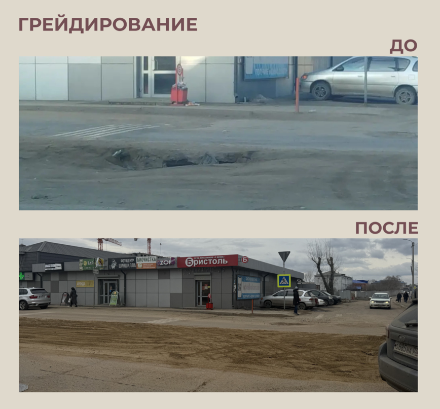 Аналогичные мероприятия проводятся и на других центральных улицах. По словам первого заместителя директора муниципального учреждения «Улан-Удэстройзаказчик» Владимира Овчаренко, дорожное полотно по возможности выравнивают с помощью грейдера, чтобы обеспечить проезд транспорта и подготовить основу для укладки нового покрытия.