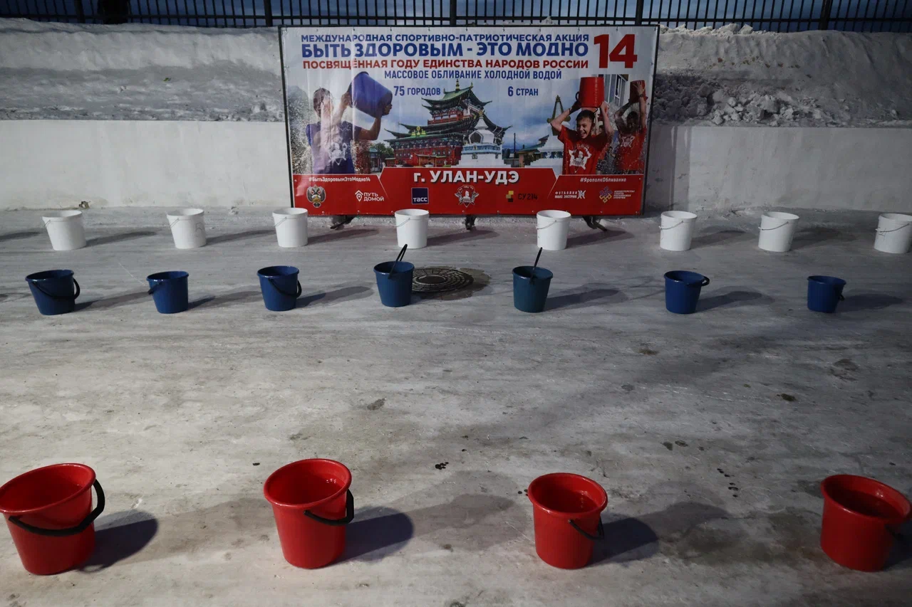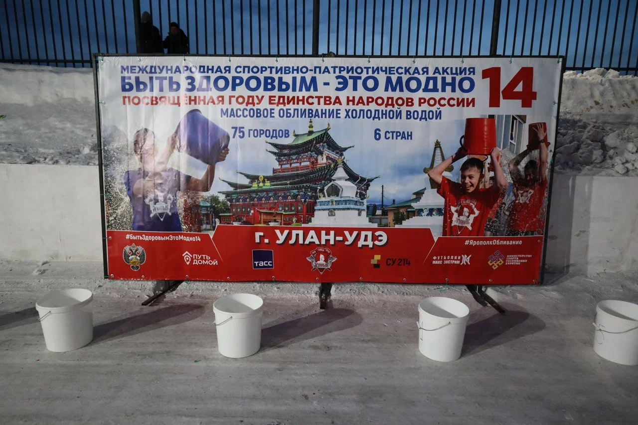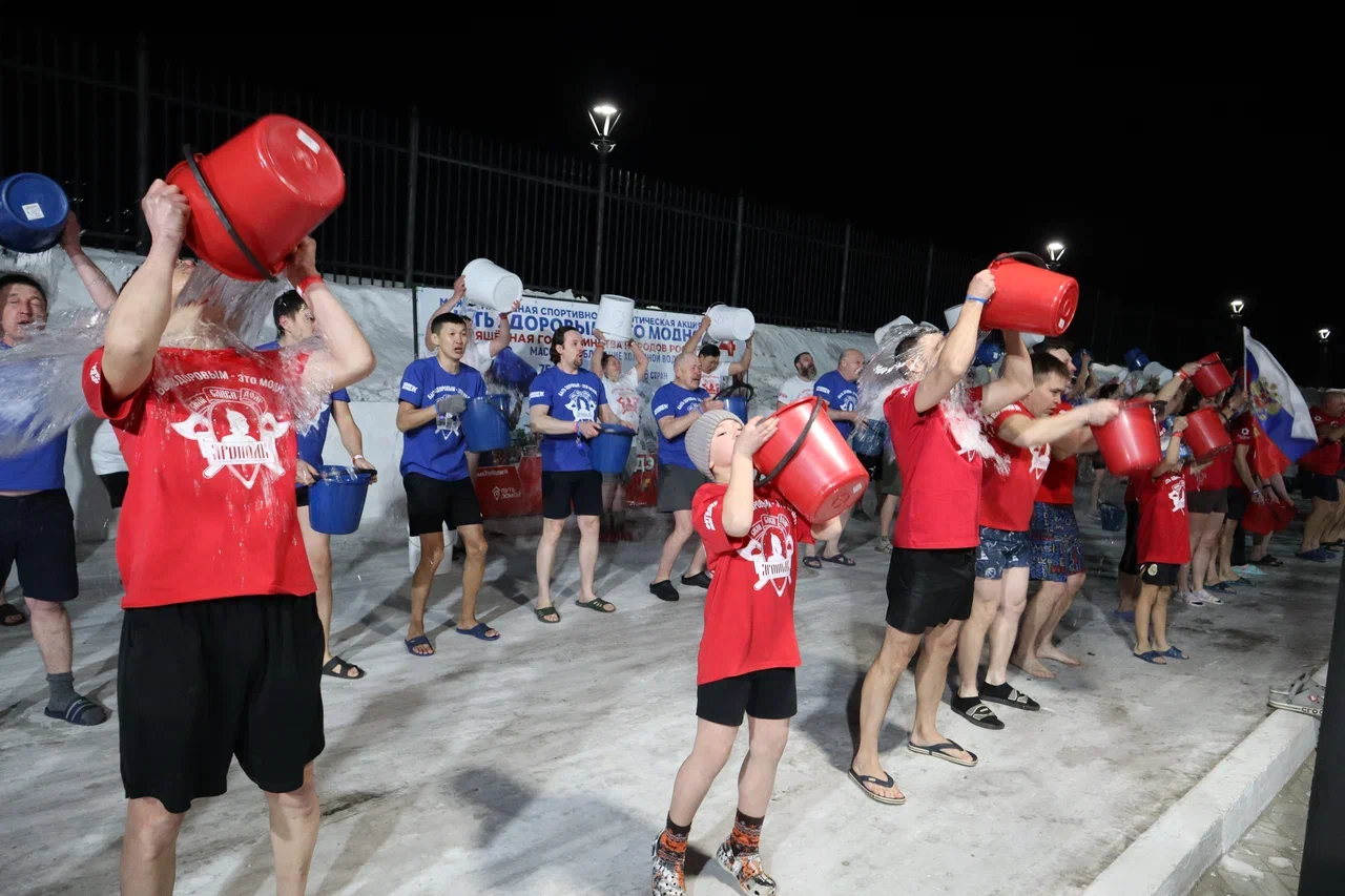 В Улан-Удэ более 100 человек облились ледяной водой на патриотической акции