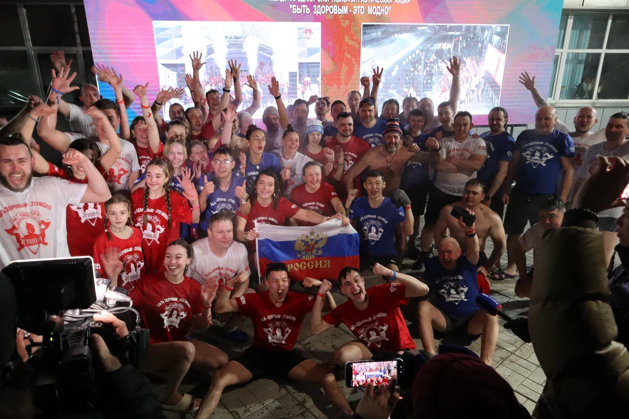 Как сообщил министр спорта РБ Иван Козырев, главным действом стало одновременное обливание ледяной водой. Более 100 смельчаков, несмотря на холод, проявили силу духа и зарядились энергией, совершив ритуал закаливания под звуки гимна Российской Федерации.