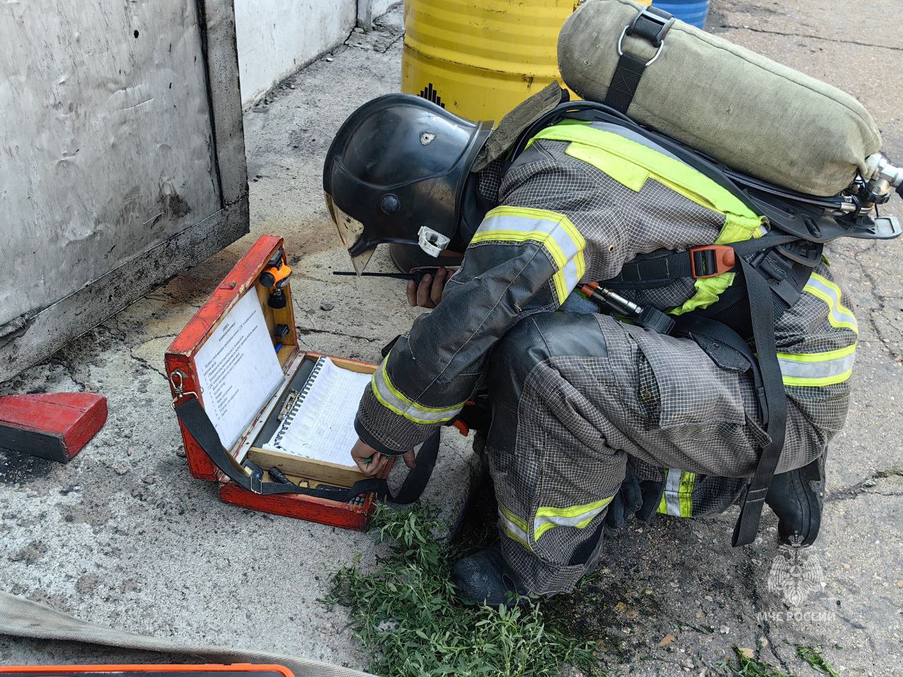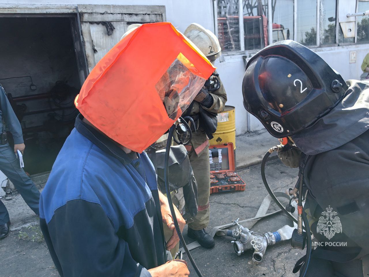 Огнеборцы приступили к спасению «пострадавшего». Звено газодымозащитной службы с применением средств защиты органов дыхания вывели мужчину на свежий воздух. После руководитель учения дал дополнительную вводную об атаке беспилотников, в результате которой условно пострадали два водителя пожарных автомобилей и две единицы техники.