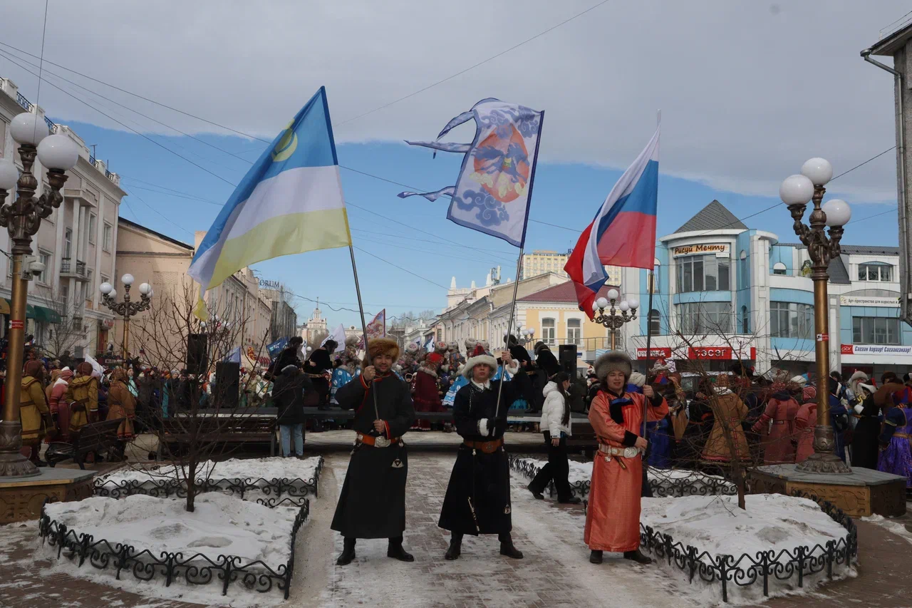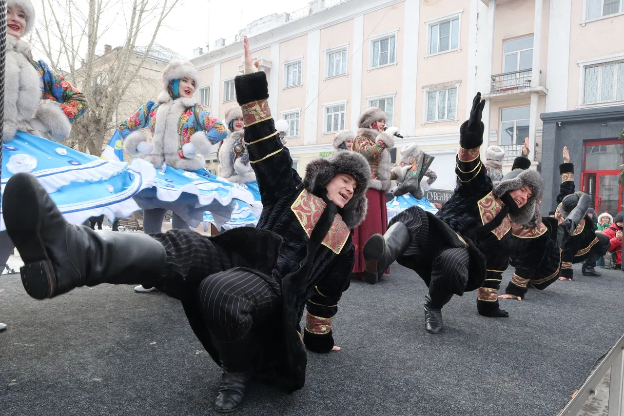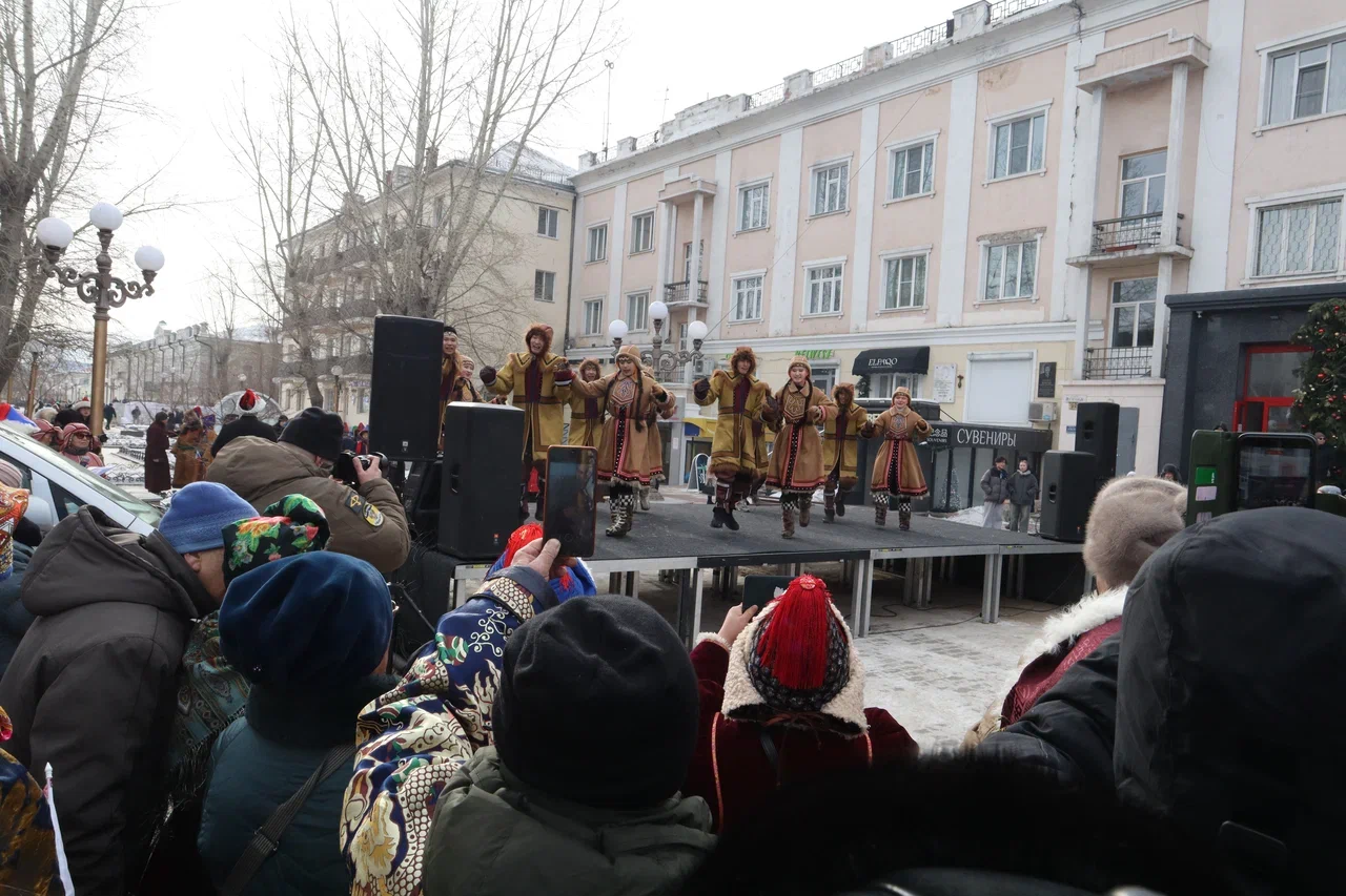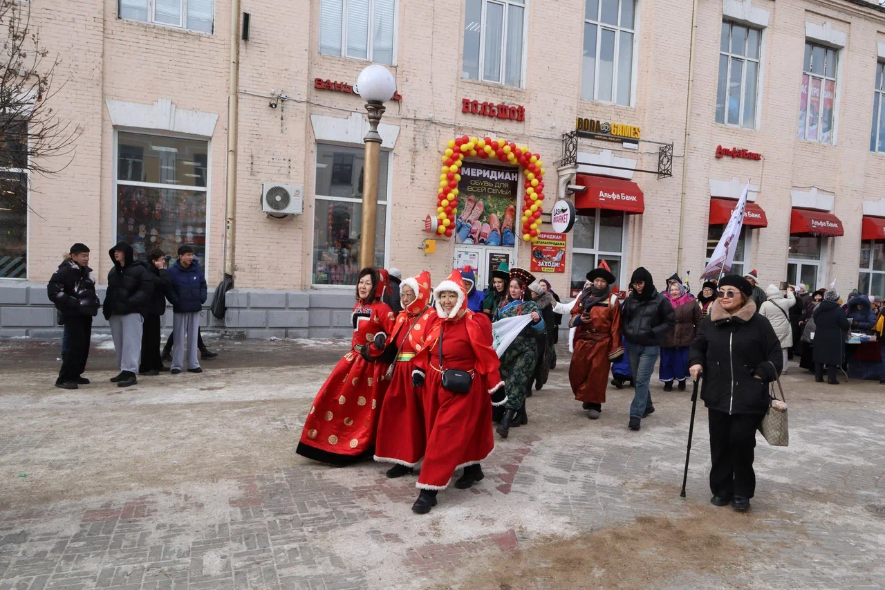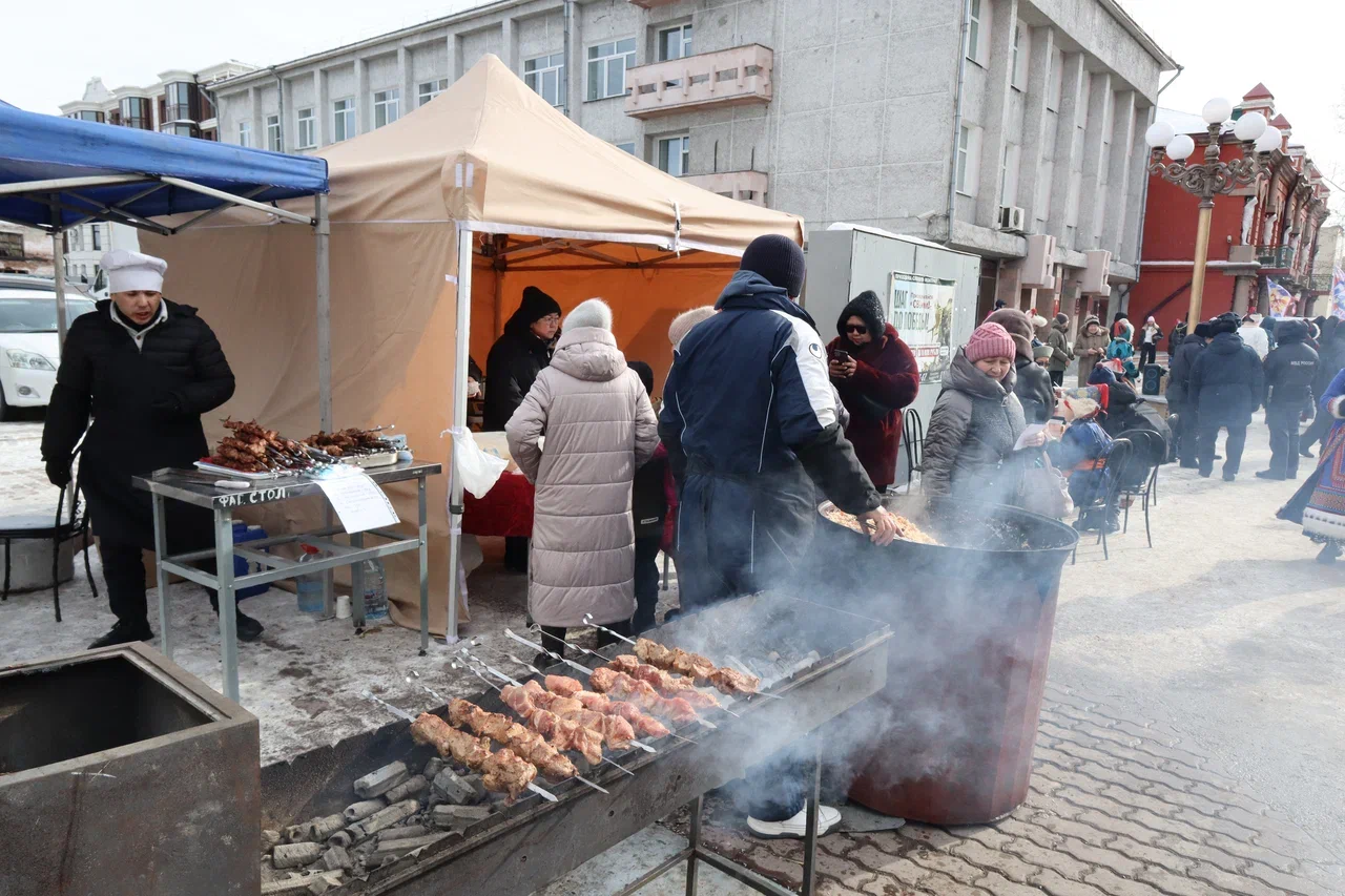 На пешеходной части для всех собравшихся развернулась насыщенная программа. Гостей ждал праздничный концерт и оживленная ярмарка-продажа. Чтобы согреться в зимний день, все желающие могли отведать горячих бууз и ароматного шашлыка, а также приобрести уникальные подарки и сувениры к празднику Белого месяца.